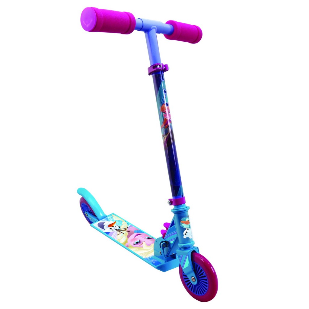 Trotineta Frozen cu 2 roti pentru ore nelimitate de distractie cu eroii preferati! Trotineta pliabila cu structura rezistenta din aluminiu si roti din silicon, ghidon reglabil pe inaltime, placa antiderapanta, frana pe spate, greutate maxima suportata 50 kg.